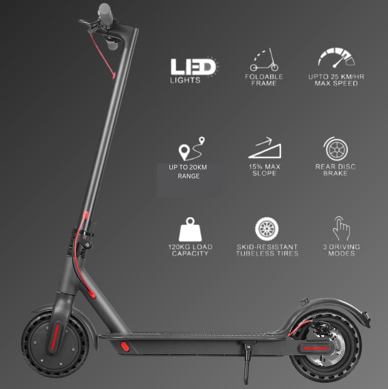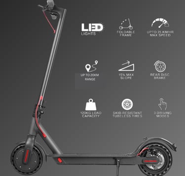 RED WHEELS Electric Scooter has a forward-thinking design that inspires and moves, just as it moves you ahead. Strong yet lightweight. The sturdy frame is made of aerospace-grade aluminum, which has a low density and high structural strength. It also has excellent thermal conductivity and corrosion resistance for added durability. RED WHEELS Electric Scooter is a great portable size and weight for carry-ons and for maneuvering stairs and pavements. Safety lighting Headlights are essential for night riding, yet not all scooters have them. RED WHEELS Electric Scooter features an ultra-bright 1.1W headlights with a range of up to 6 meters for added safety. Red taillights flash distinctly while braking as a warning to other pedestrians and vehicles on the road. Up to 29 KM on a single charge, Several 36V 4.4Ah high-capacity lithium batteries supplied by LG delivers up to 29 KM of travel on a single charge.