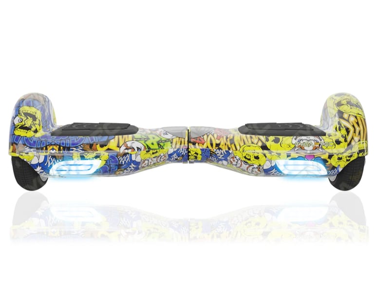 Turn heads and ride to the rhythm with the Red Wheels Graffiti Bluetooth Hoverboard β a perfect mix of eye-catching design, premium safety features, and top-notch entertainment!